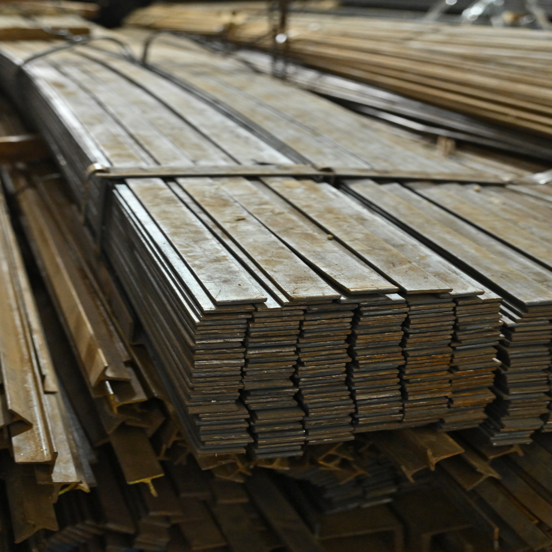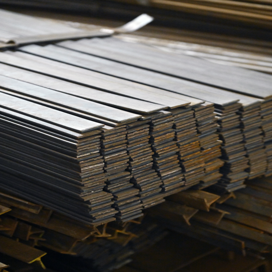 Rolling: The heated billets are passed through rollers to form flat bars of various thicknesses and widths.