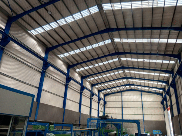 Fabrication: Steel components (beams, columns, roof trusses, etc.) are fabricated in a factory setting, often using hot-rolled steel or pre-engineered PRS sections.